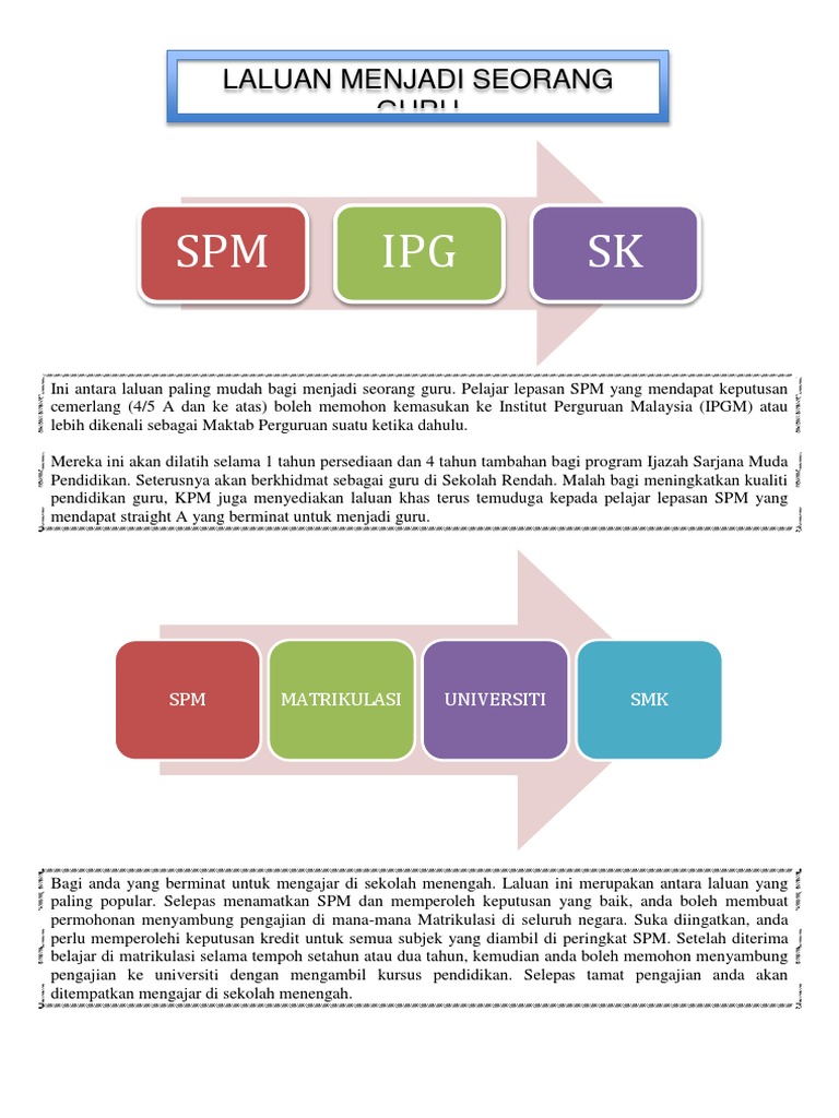 Laluan untuk guru cemerlang. SPM IPG SK. Tanggungjawab dan Amanah. Laluan ini antara pilihan guru-guru yang ingin mengajar di sekolah menengah.